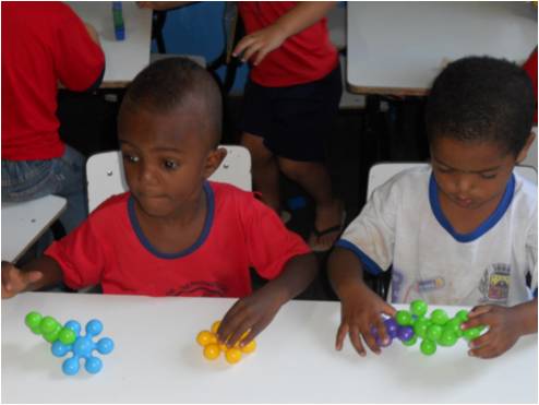 ATIVIDADES DIVERSIFICADAS: A maior parte do tempo as crianças dedicam as atividades diversificadas livremente escolhidas: constroem com blocos lógicos, “lêem” histórias, desenham, pintam, modelam. São oferecidas no espaço da sala de aula pelo menos três opções diárias. Nessa hora a professora observa seu aluno na manipulação do material oferecido, em suas produções, sua interação com os colegas, mediando seu conhecimento e desafiando-o a novas aprendizagens.